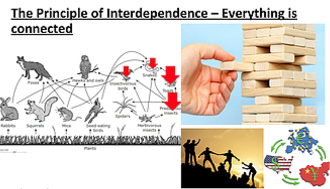 The principle of interdependence helps us to understand that everything is connected. We see these inter-relationships at work through ecosystems where every element of the system has a value and a role to play, and also in our own communities when they work well. So, when we plan out learning, the starting point is to see how we can link learning together to give it greater meaning, rather than teaching through separate subjects with little or no connection from one subject to another. We can still teach subject specific skills and knowledge, but the application is to something much more joined up. The principle of interdependence also reminds us of the importance of good relationships if we are to work well together and the values culture we need to create to enable a collaborative approach to learning to be successful.